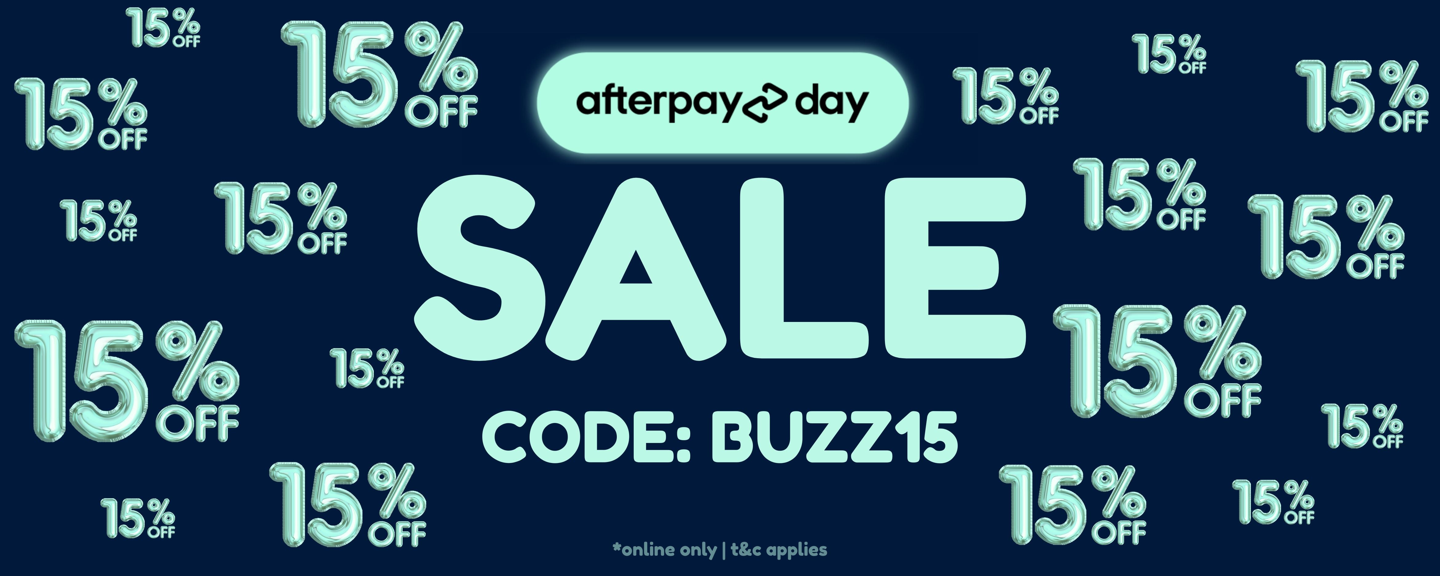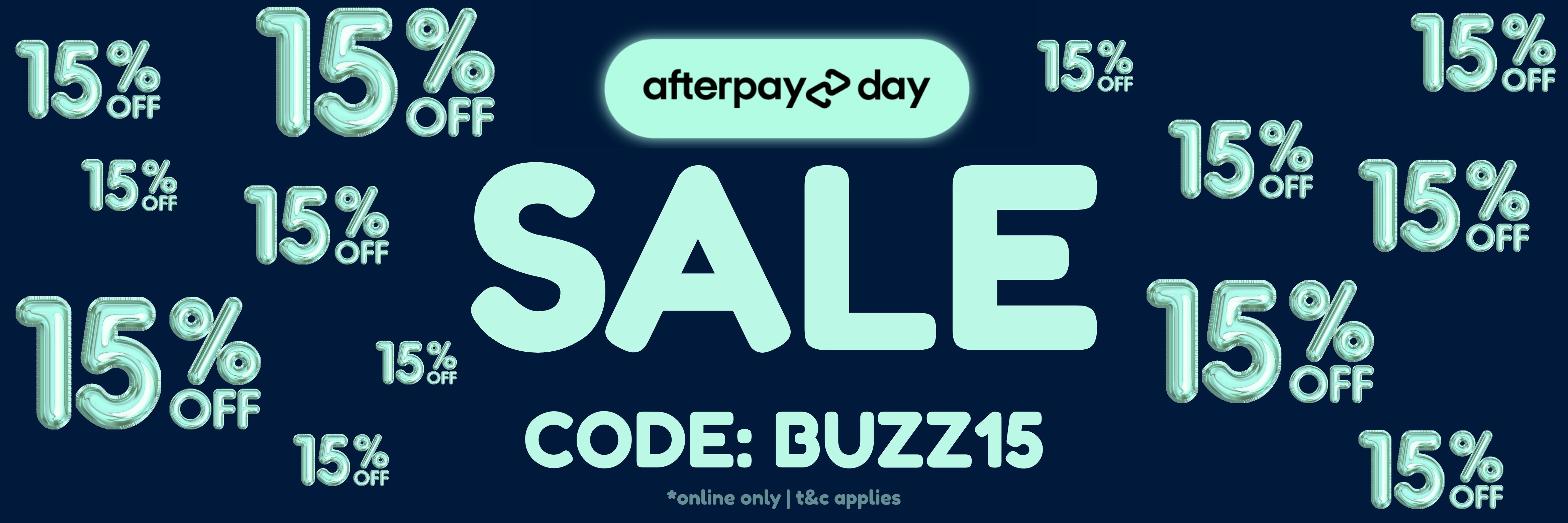 AFTERPAY DAY SALE ON NOW | 15% OFF WITH CODE: BUZZ15