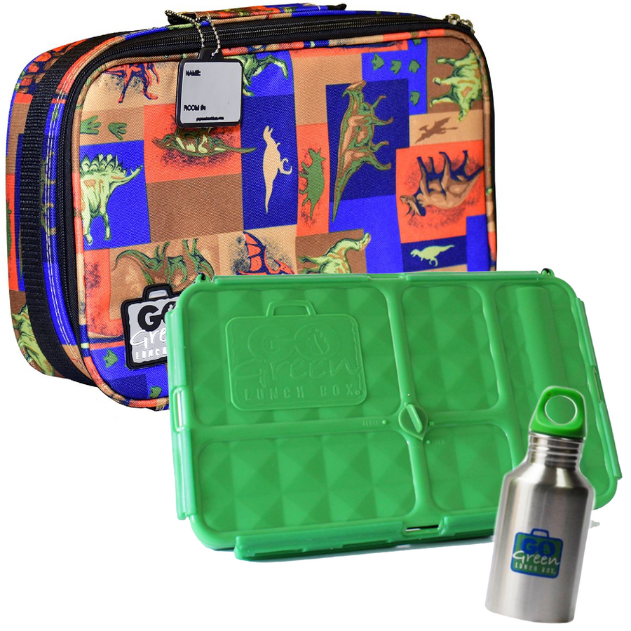 Each Go Green Lunch Box set comes with an insulated fabric carrier, a five-compartment food container, a stainless steel drink bottle and a reusable gel freezer pack – all leach - and lead-free.