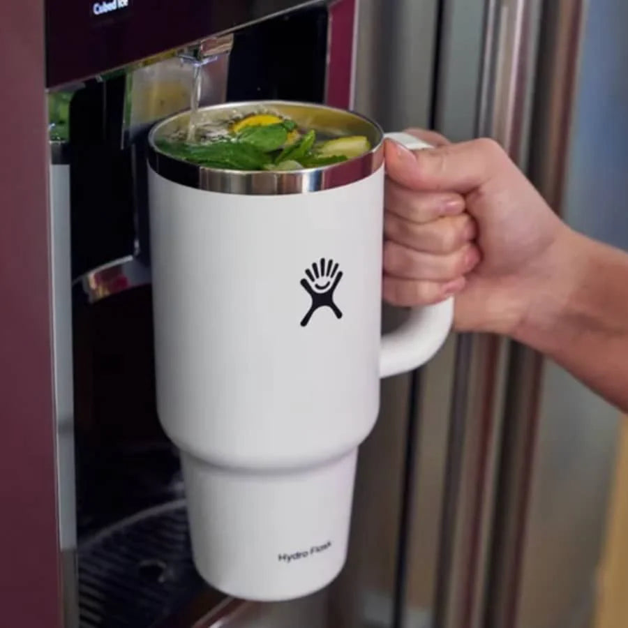The Travel Tumbler is here to hydrate more and refill less. A very comfortable, extremely durable handle takes it to the next level, and the large size can go anywhere, even fitting most cupholders. Cold stays cold, and the flexible straw is easy to sip any which way.