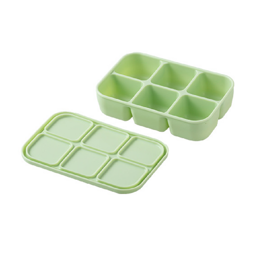 Keep your food fresh and mess-free with this silicone bento box. The eco-friendly silicone box can be used for daily snacks, with six compartments to store food separately, or as a freezer tray with lid for baby food, ice, prepped ingredients and more!