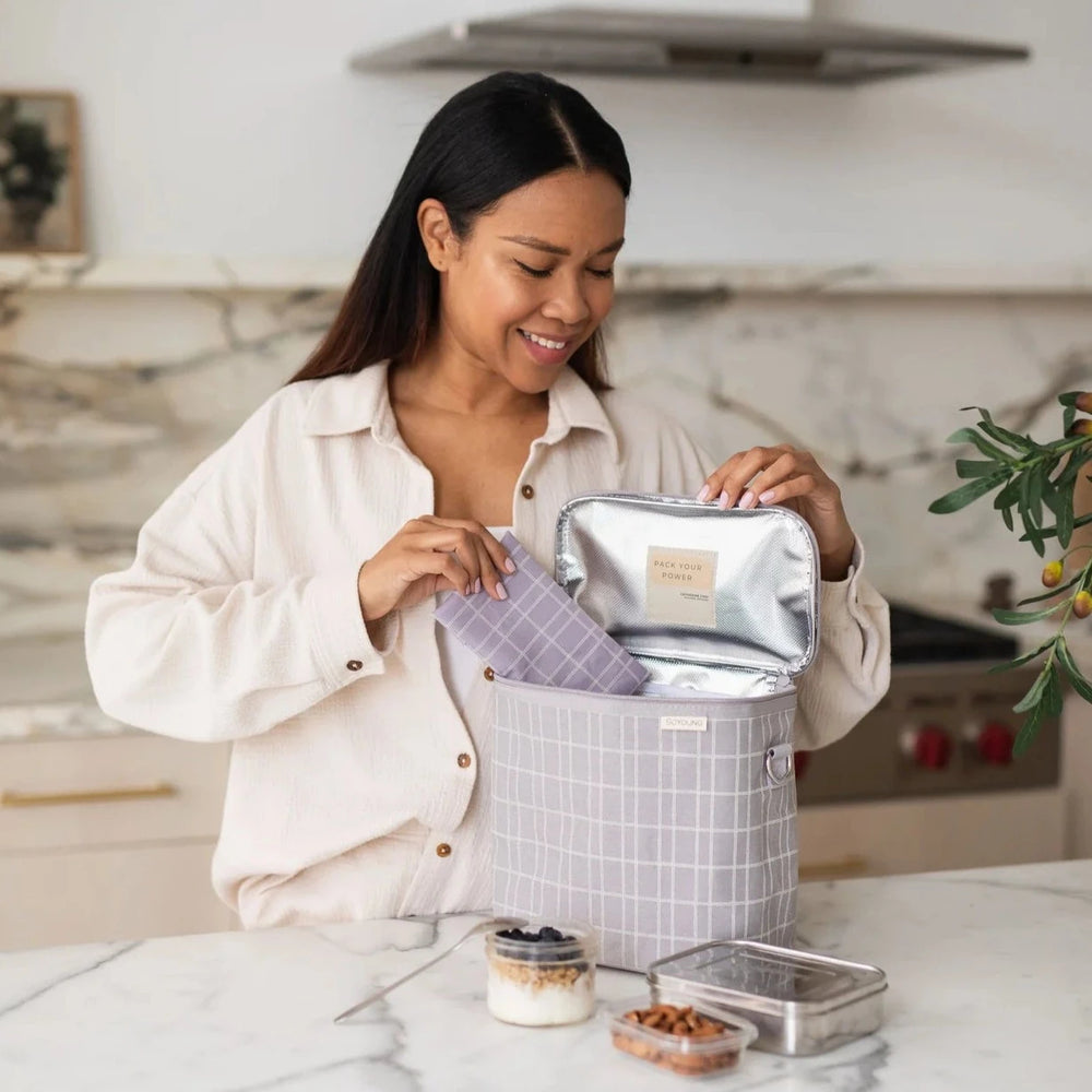 SoYoung Linen Poche Insulated Bag - Light Grey Grid